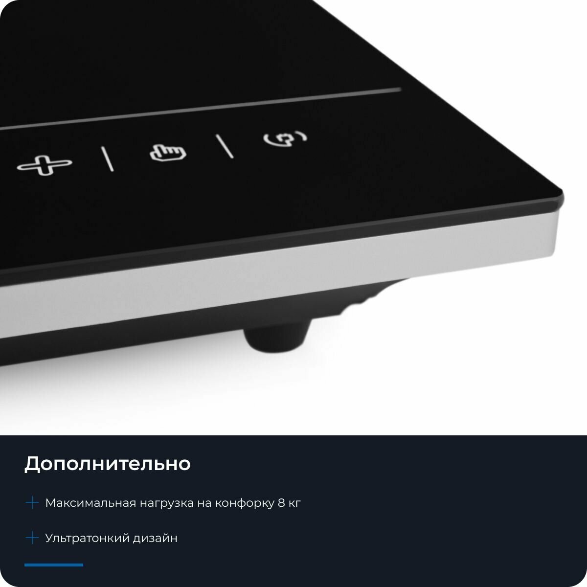 | Плюсы: | У нее одна конфорка, но зато индукционная, поэтому нагревается только посуда вместе с конфоркой, а не вся панель. На сенсорной панели высвечивается много разных функций, настройка удобная и быстрая, в одно касание пальца. |
