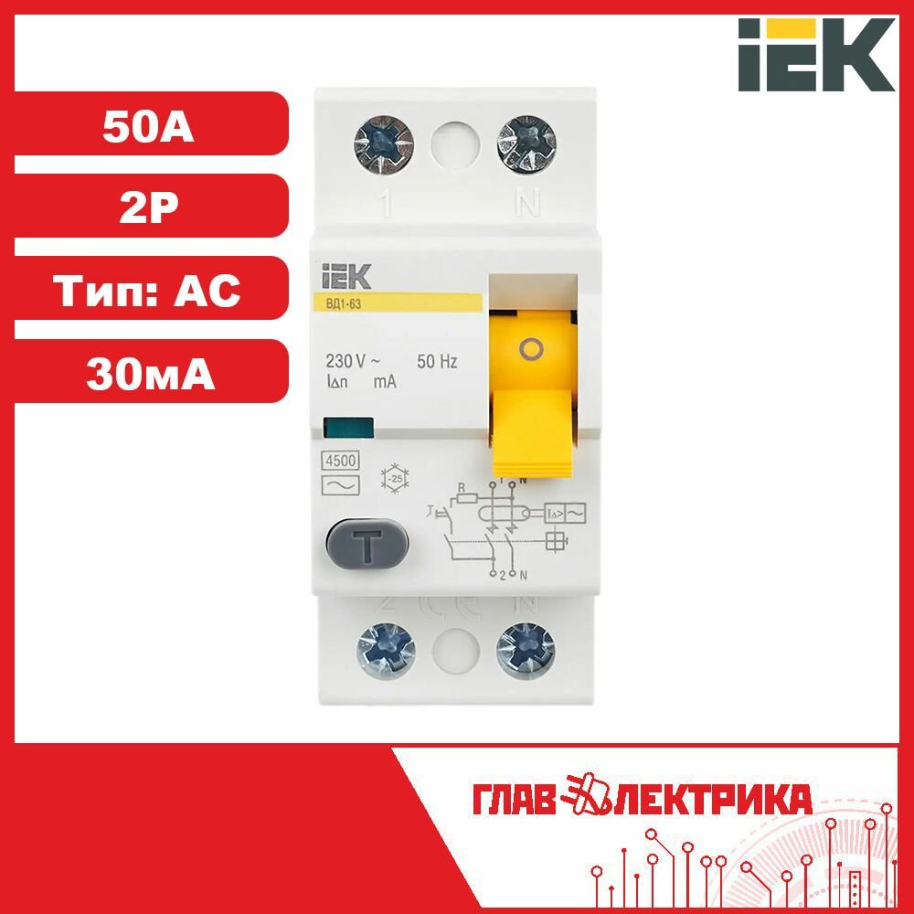 Ниже Вы можете прочитать отзывы на Устройство защитного отключения (УЗО) Iek ВД1-63 2Р 50А 30мА, MDV10-2-050-030, ознакомится с подробными характеристиками, посмотреть интересные обзоры и фотографии на Устройство защитного отключения (УЗО) Iek ВД1-63 2Р 50А 30мА, MDV10-2-050-030.