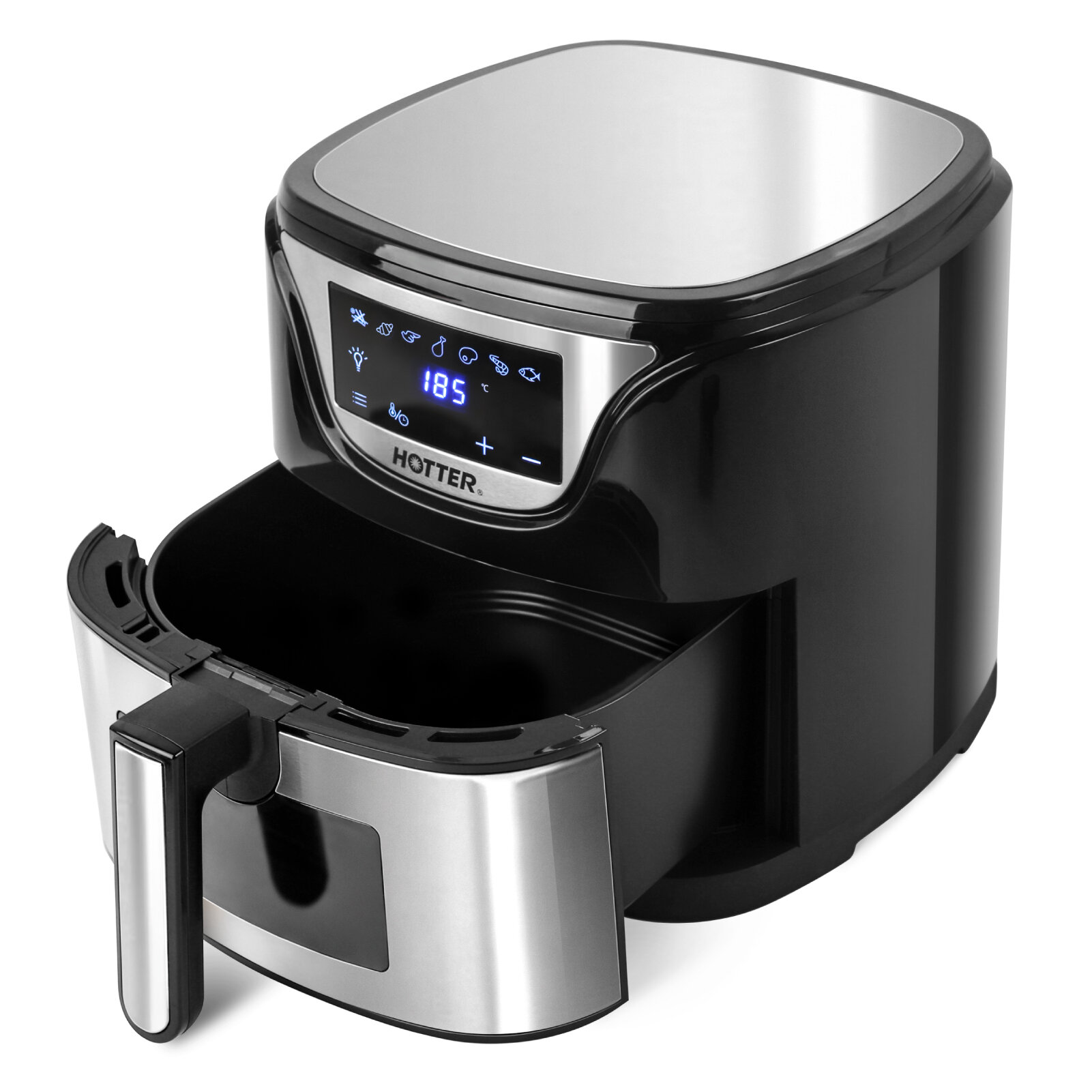 Купить Аэрогриль HOTTER HX-588 черный/ металлик, 7 автопрограмм и регулировка времени и температуры, обзорное окно, объем 4.5л, 1500Вт
