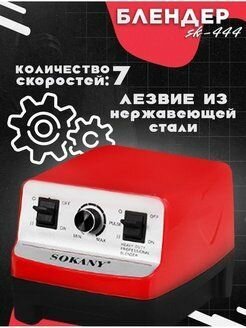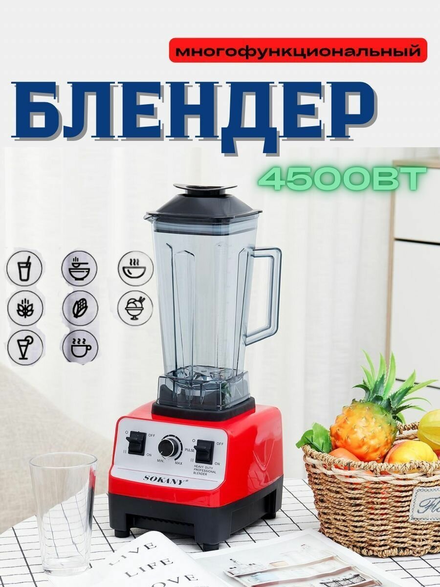 Мощный многофункциональный блендер /Sokany SK-444 /миксер/соковыжималка/комбайн для фруктов/смузи/2 л/4500 Вт/красный