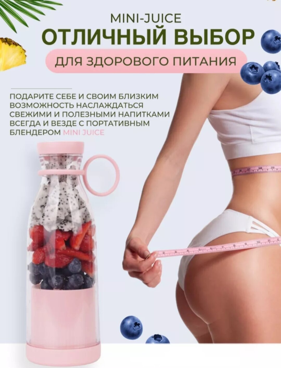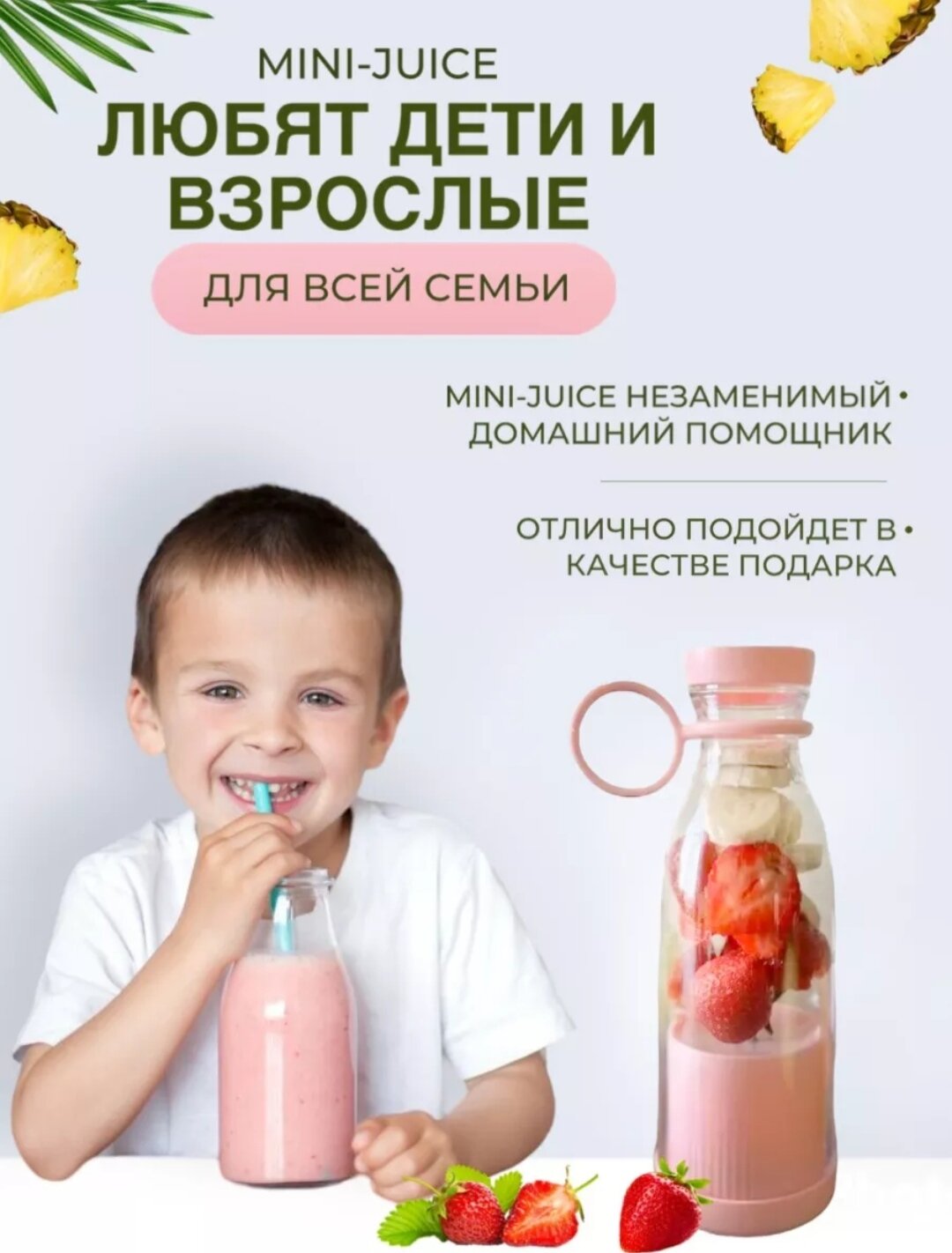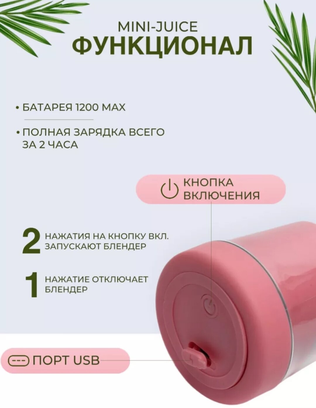 Портативный блендер для смузи / Беспроводной миксер для коктейлей из фруктов(цвет микс) интересное: