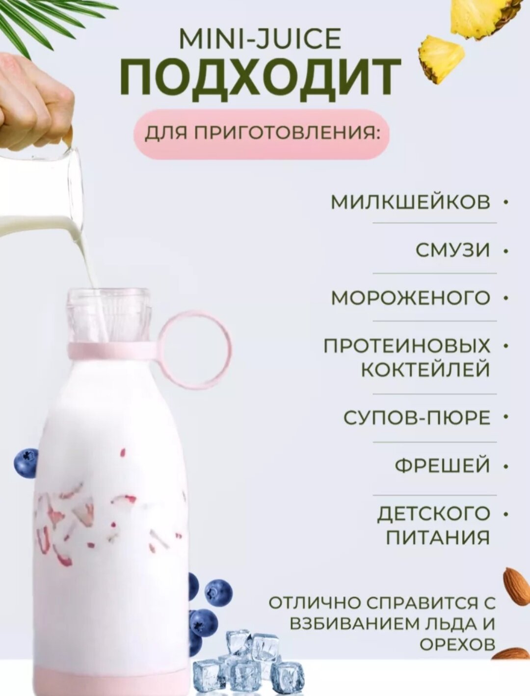 Портативный блендер для смузи / Беспроводной миксер для коктейлей из фруктов