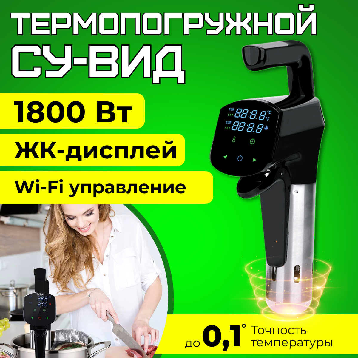 Сувид погружной с wi-fi управлением для профессионалов и любителей, IPX7, 1800 Вт, 11 л, дисплей, таймер, черный, су вид интересное:
