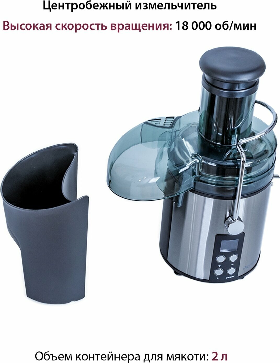 | Минусы: | Больше пены, чем сока, очень быстро забивается и отход не выбрасываются из сокосборника |