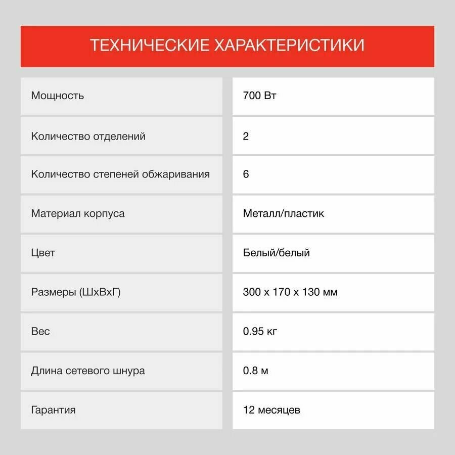 Тостер Starwind ST1100 белый, 700 Вт, тостов - 2