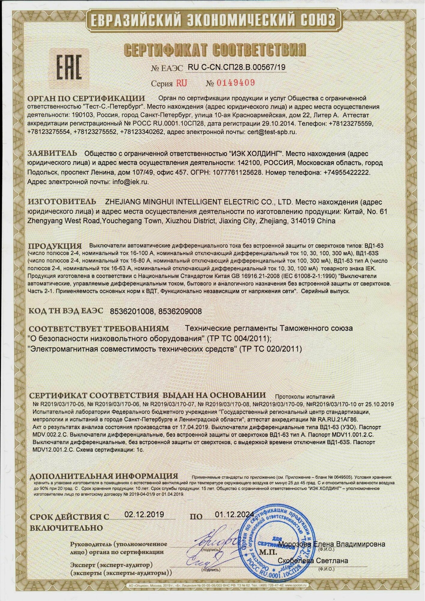 УЗО IEK ВД1-63 (MDV10-2-016-030) 16А 30 мА 2P тип AC 4,5 кА
