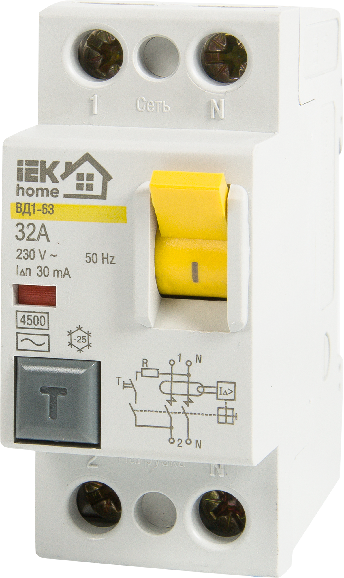 Выключатель дифференциальный (УЗО) IEK ВД1-63 2Р, 25А, 30мА, тип AC