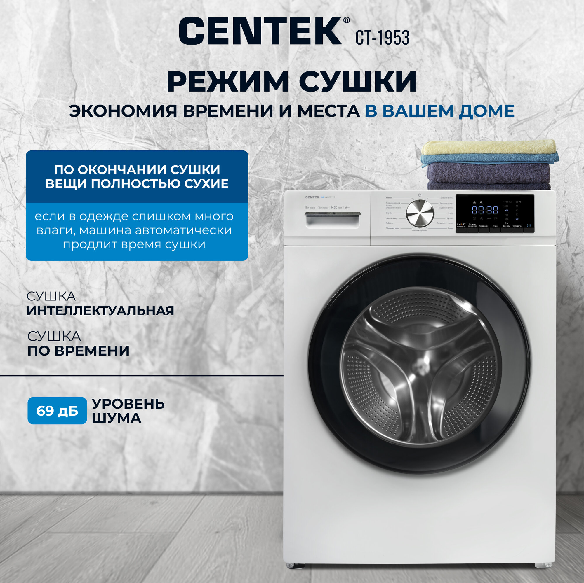 СохранитьСтиральная машина с сушкой Centek CT-1953 интересное:
