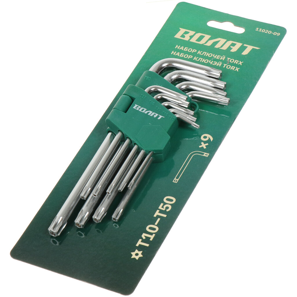 Набор имбусовых ключей Волат Набор ключей Torx T10-T50 9 предметов длинных ВОЛАТ (11020-09), 9 предм.