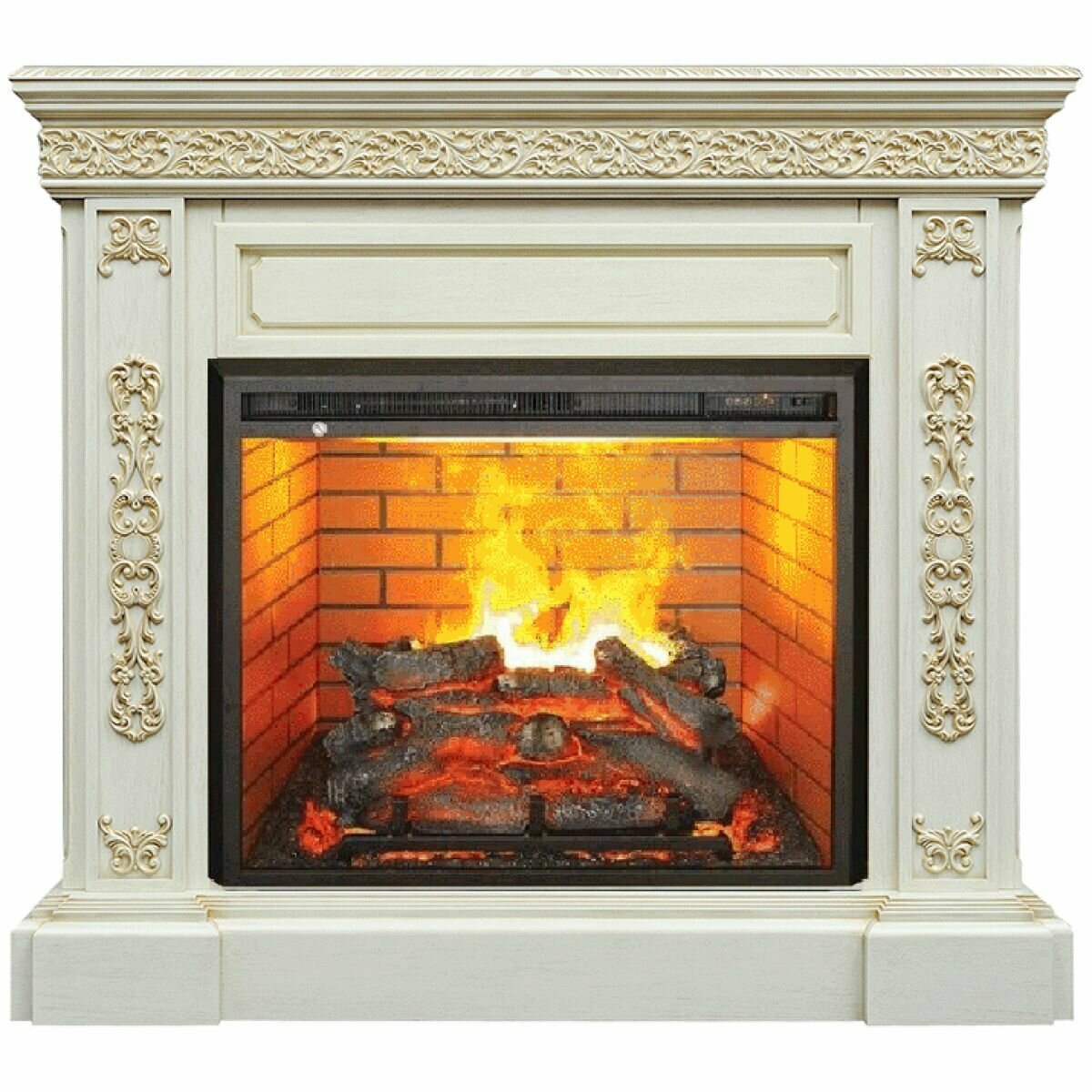 Купить Электрокамин Ekaterina (белый дуб) с очагом 3D Novara 26 с очагом Real Flame