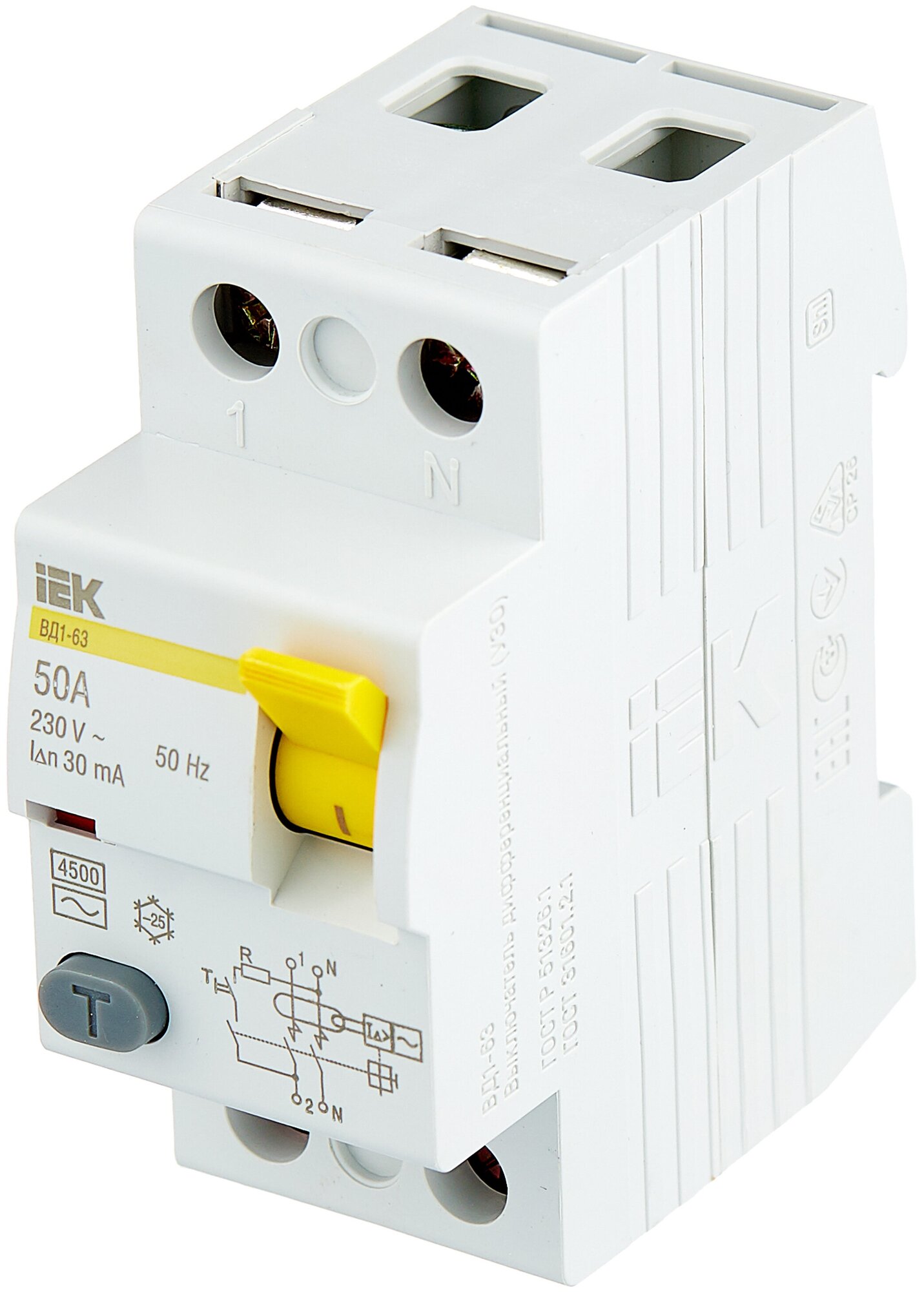 Выключатель дифференциальный (УЗО) IEK ВД1-63 2Р, 25А, 30мА, тип AC