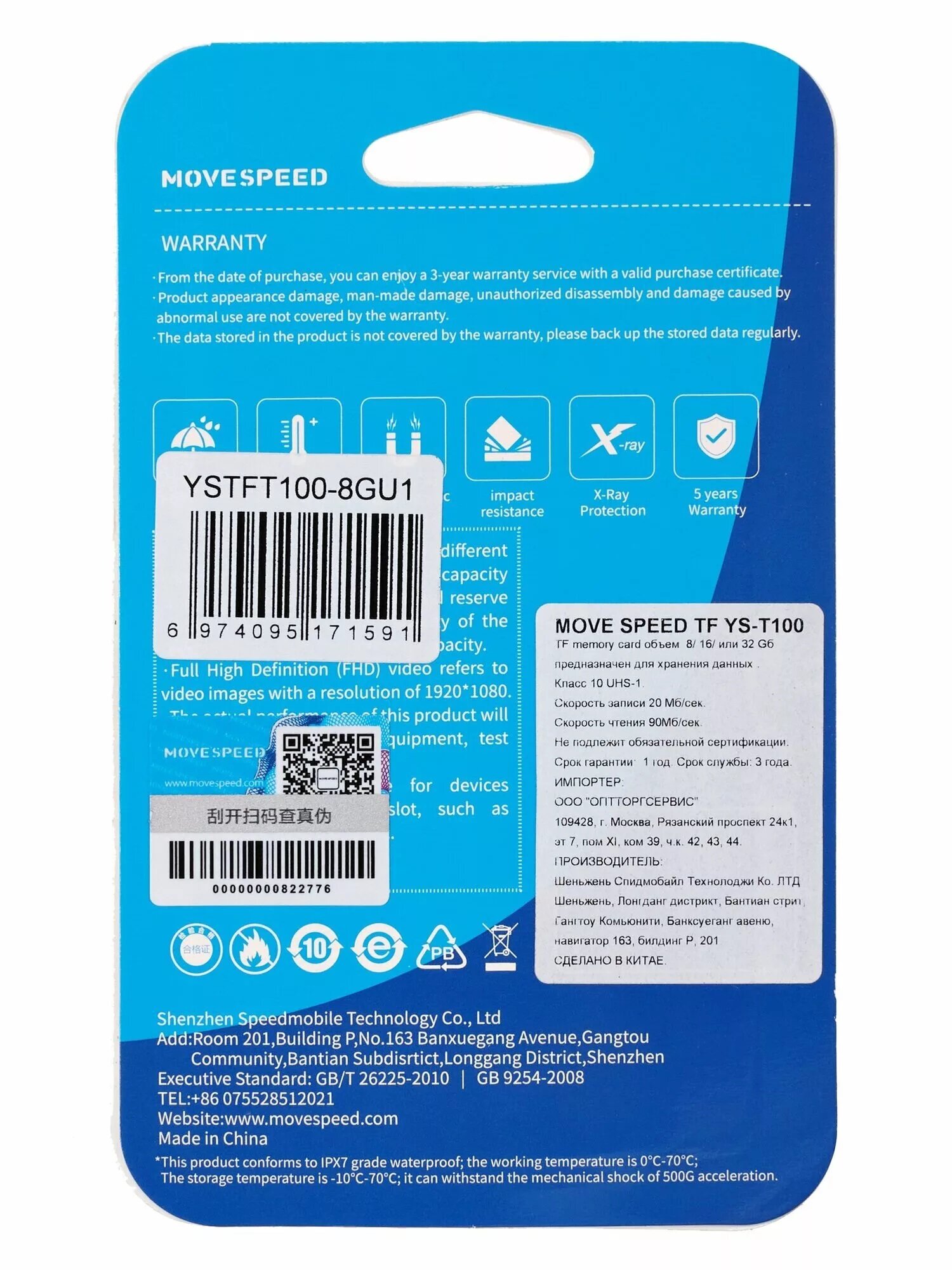 Карта памяти 8Gb MicroSD Move Speed FT100 (YSTFT100-8GU1) интересное:
