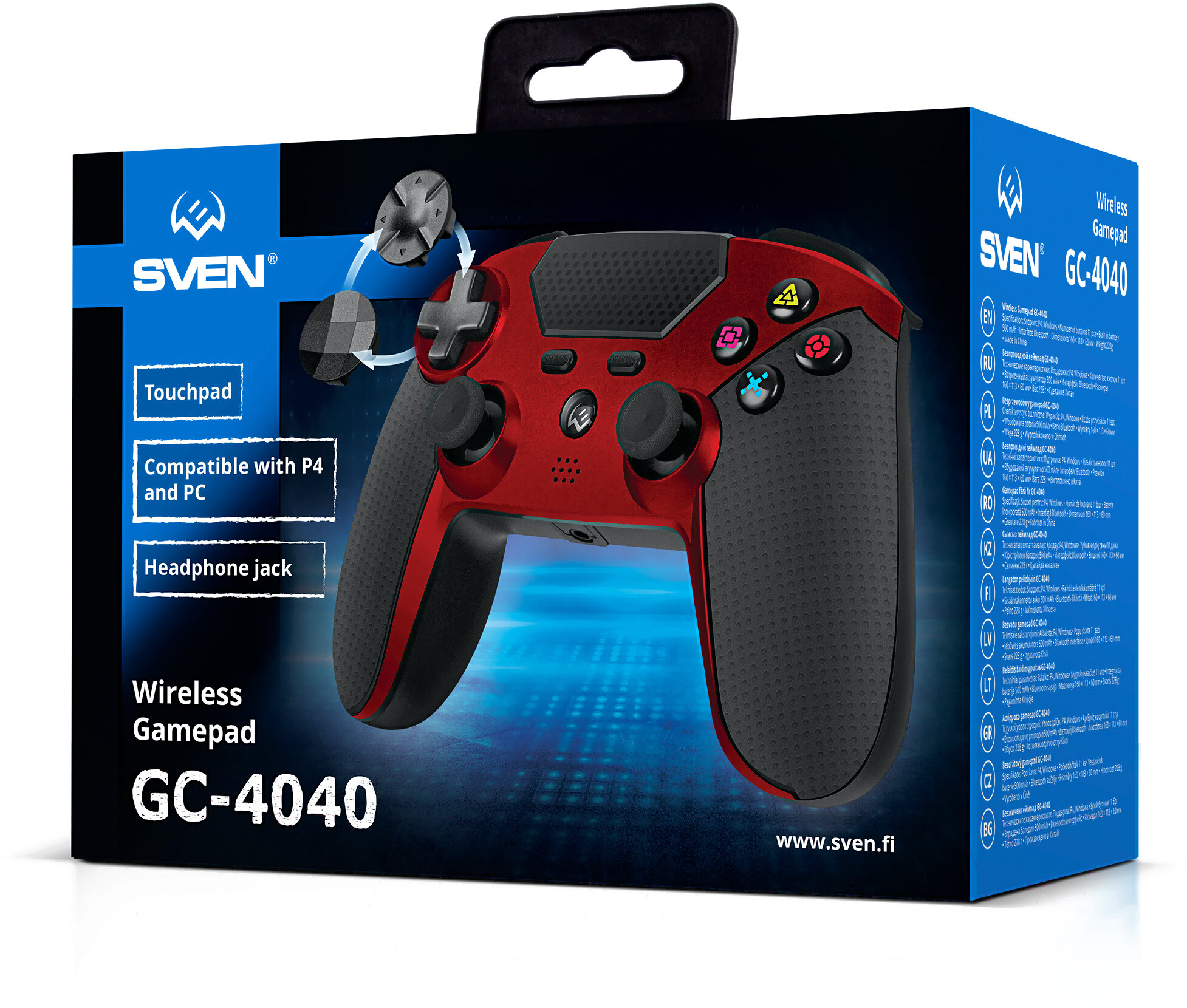 Беспроводной геймпад SVEN GC-4040, 11 кнопок и 2 стика, D-pad, поддержка PS4/PC, Touchpad, 3.5mm jack.
