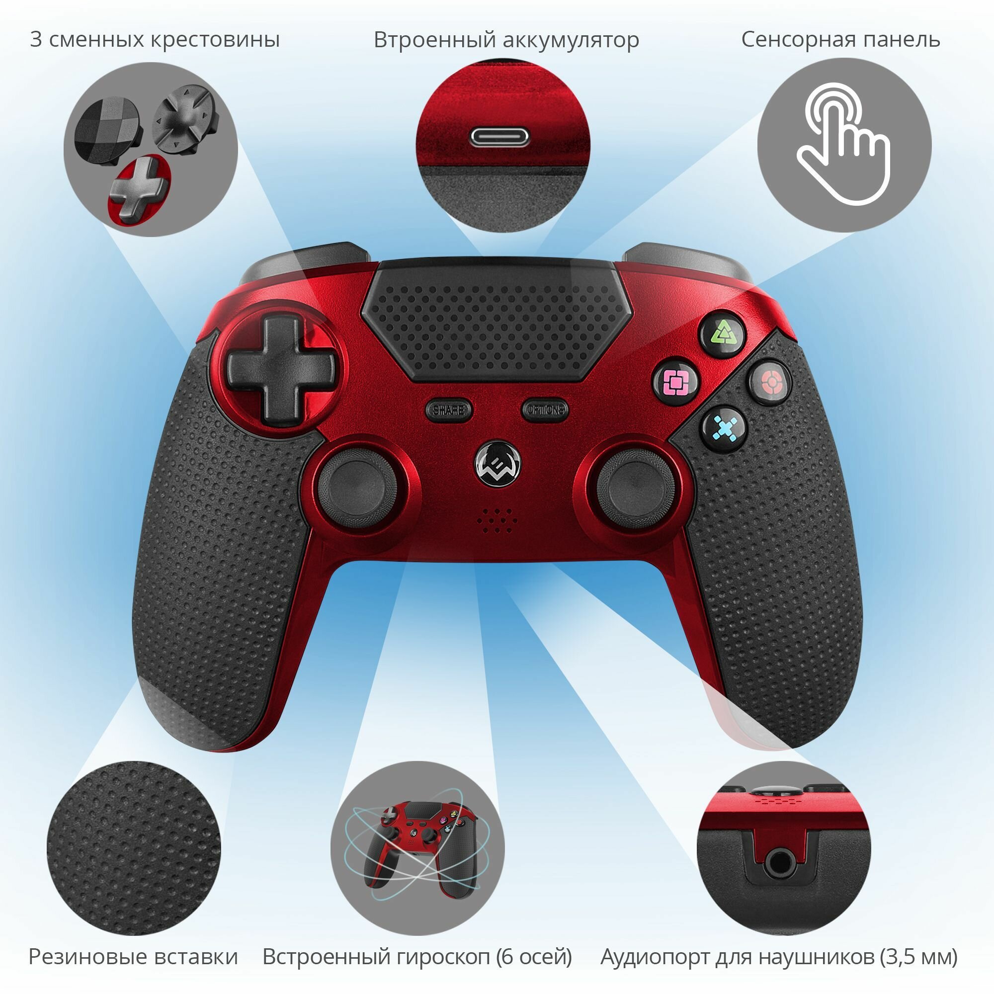 | Плюсы: | Новинка. Есть хорошее вибро, стики и кнопки не залипают, красивый дизайн, легкий. Аудио для наушников. Гироскоп на 6 осей! |