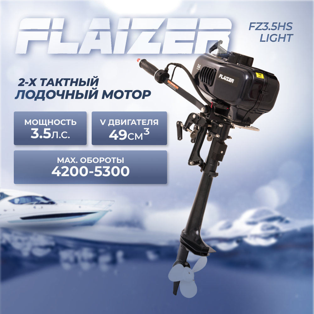Лодочный мотор бензиновый двухтактный Flaizer FZ3.5HS Light 3.5 л. с. подвесной для надувной гребной лодки ПВХ интересное: