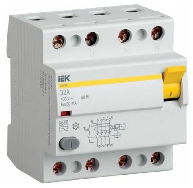 Выключатель дифференциального тока (УЗО) 4п 32А 30мА тип AC ВД1-63 IEK MDV10-4-032-030 (1 шт.)