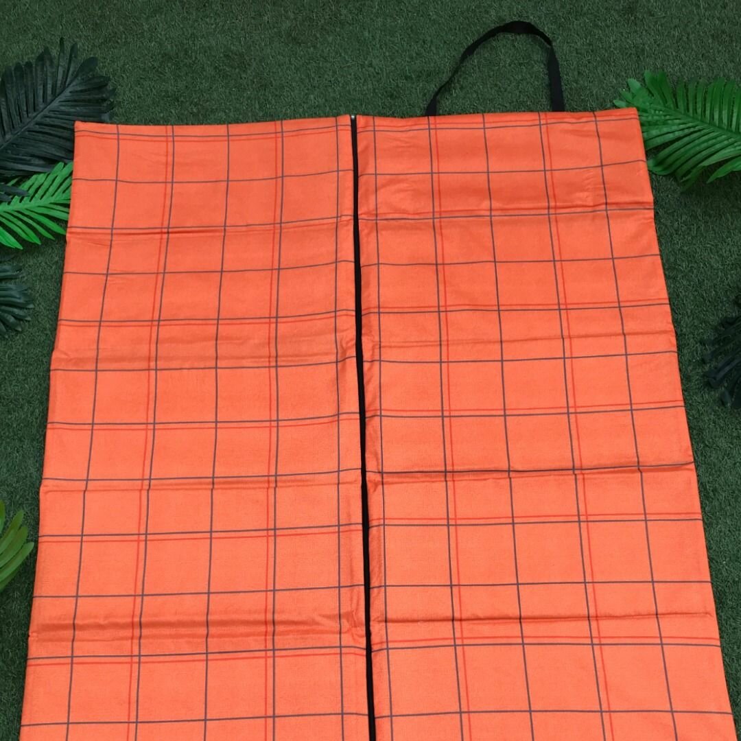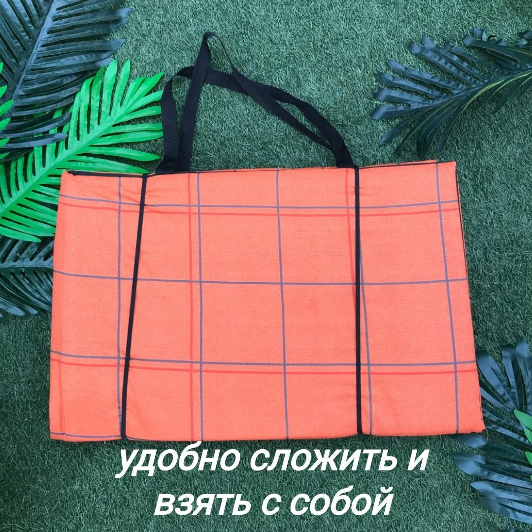 Коврик двойной на молнии 155x(55+55)x1,0 см, 4 сложения, наполнитель пенка, Клетка оранж, арт. 1165