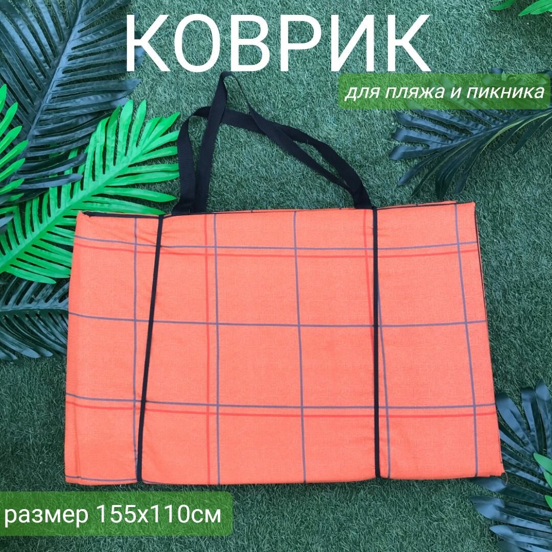 Купить Коврик двойной на молнии 155x(55+55)x1,0 см, 4 сложения, наполнитель пенка, Клетка оранж., арт. 1165