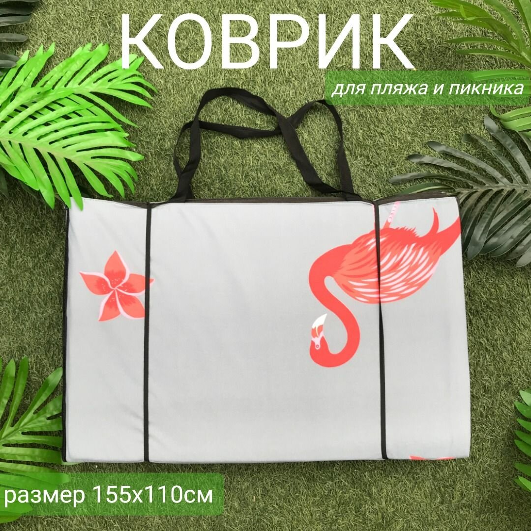 Коврик пляжный двойной на молнии 155x(55+55)x1,0 см, 4 сложения, наполнитель пенка, Фламинго