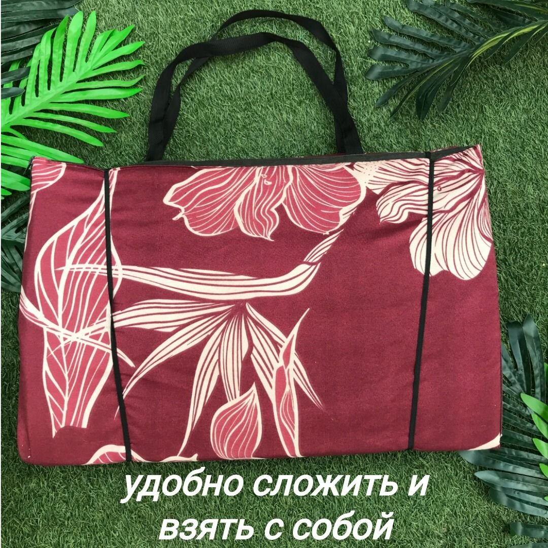 Купить Коврик двойной на молнии 155x(55+55)x1,0 см, 4 сложения, наполнитель пенка, Цветы бордо, арт. 1165