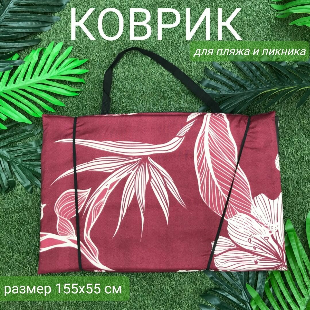 Купить Коврик 155x55x1,0 см, 4 сложения, на резинке, с ручками, наполнитель пенка, Цветы бордо, арт. 1162