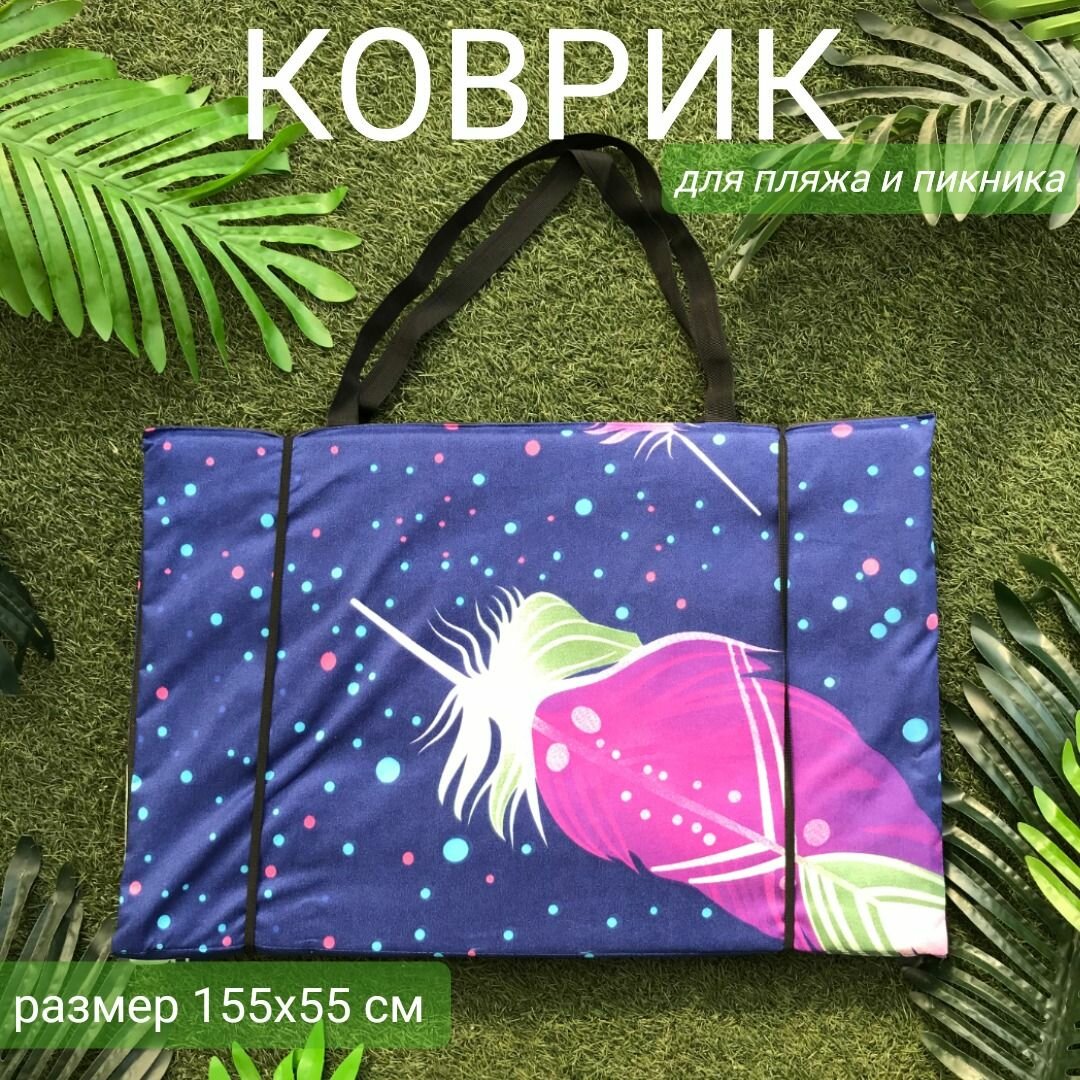 Купить Коврик 155x55x1,0 см, 4 сложения, на резинке, с ручками, наполнитель пенка, Перья 3D, арт. 1162