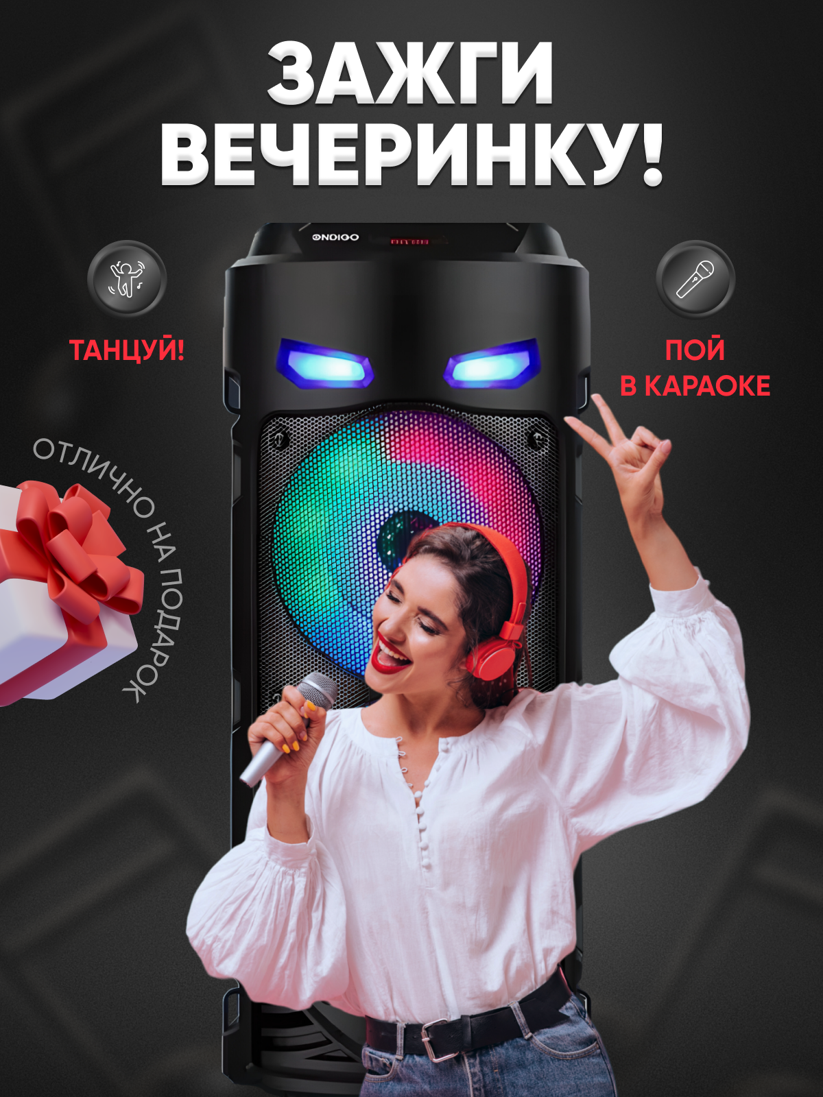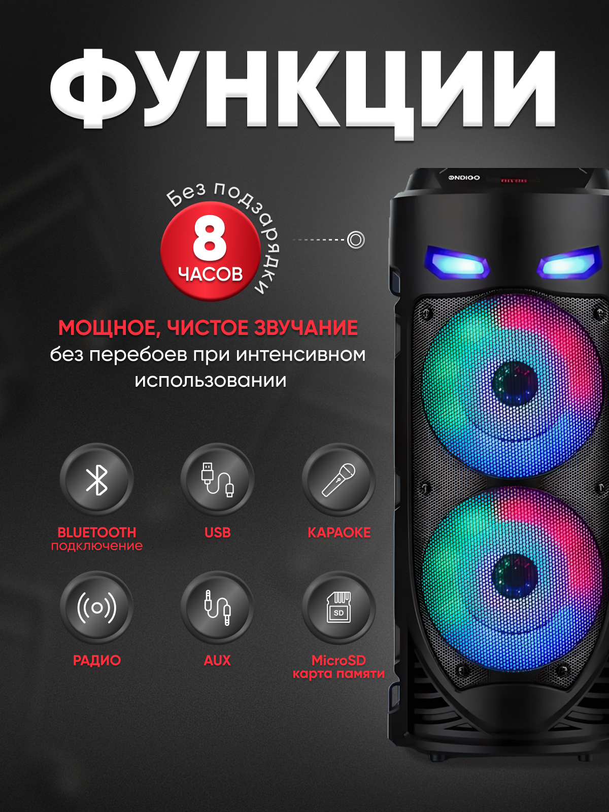 Беспроводная акустическая система ZQS 6212 - Колонка с микрофоном / Портативная колонка с Bluetooth / Караоке станция / Динамик большой / Светомузыка