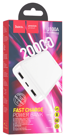 Внешний аккумулятор HOCO J100A, 20000 mAh, LED индикатор, Белый