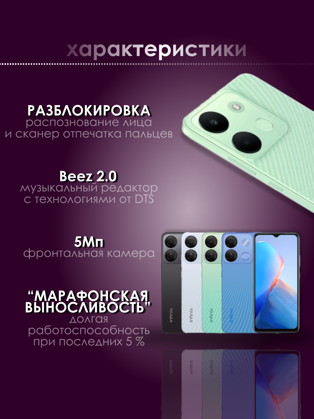 Смартфон Infinix Smart 7 3/64 ГБ Global для РФ, Dual nano SIM, peacock blue