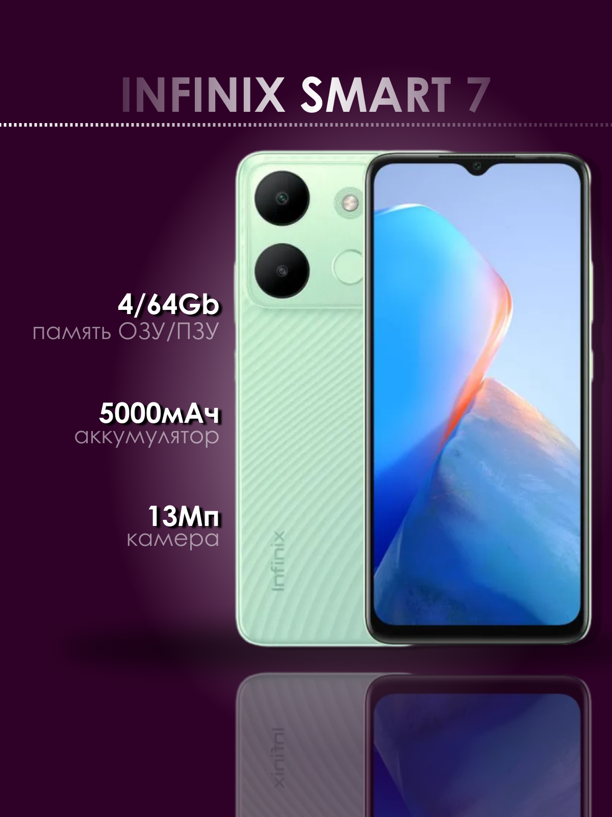 Смартфон Infinix Smart 7 4/64 ГБ, 2 nano SIM, coastal green