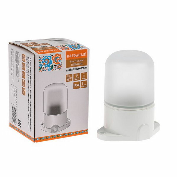 Светильник НПБ400П настенно-потолочный белый, IP54, 60 Вт, основание-поликарбонат, Народный Артикул SQ0303-1501