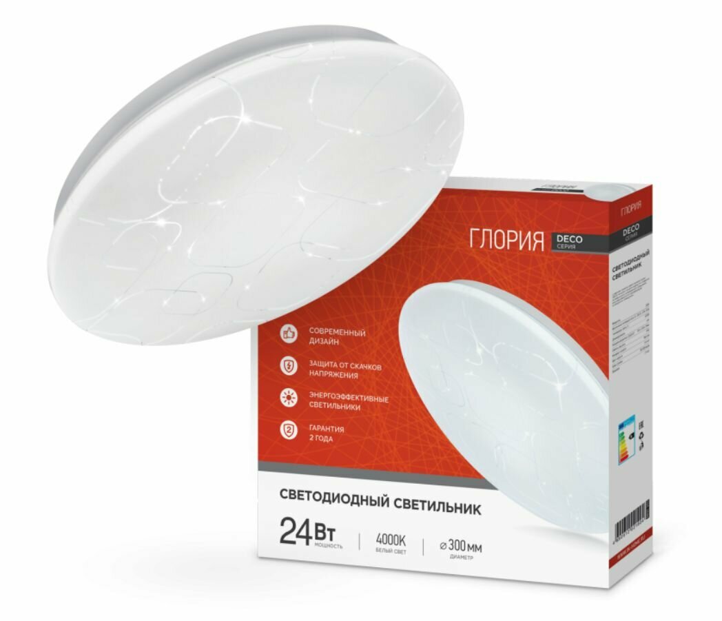 Светильник светодиодный серии DECO 24Вт 230В 4000К 1560лм 300мм глория IN HOME