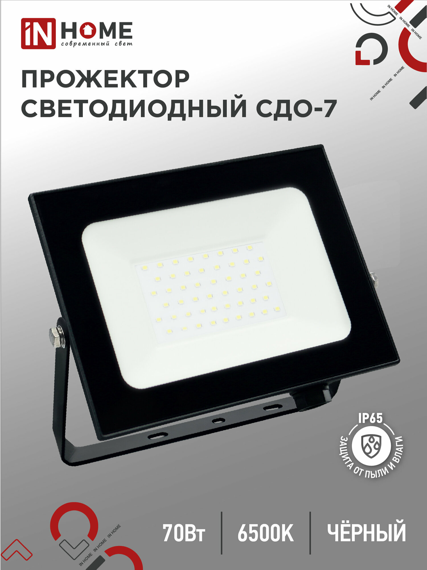 Прожектор светодиодный IN HOME СДО-7 50Вт 230В 6500К IP65 черный
