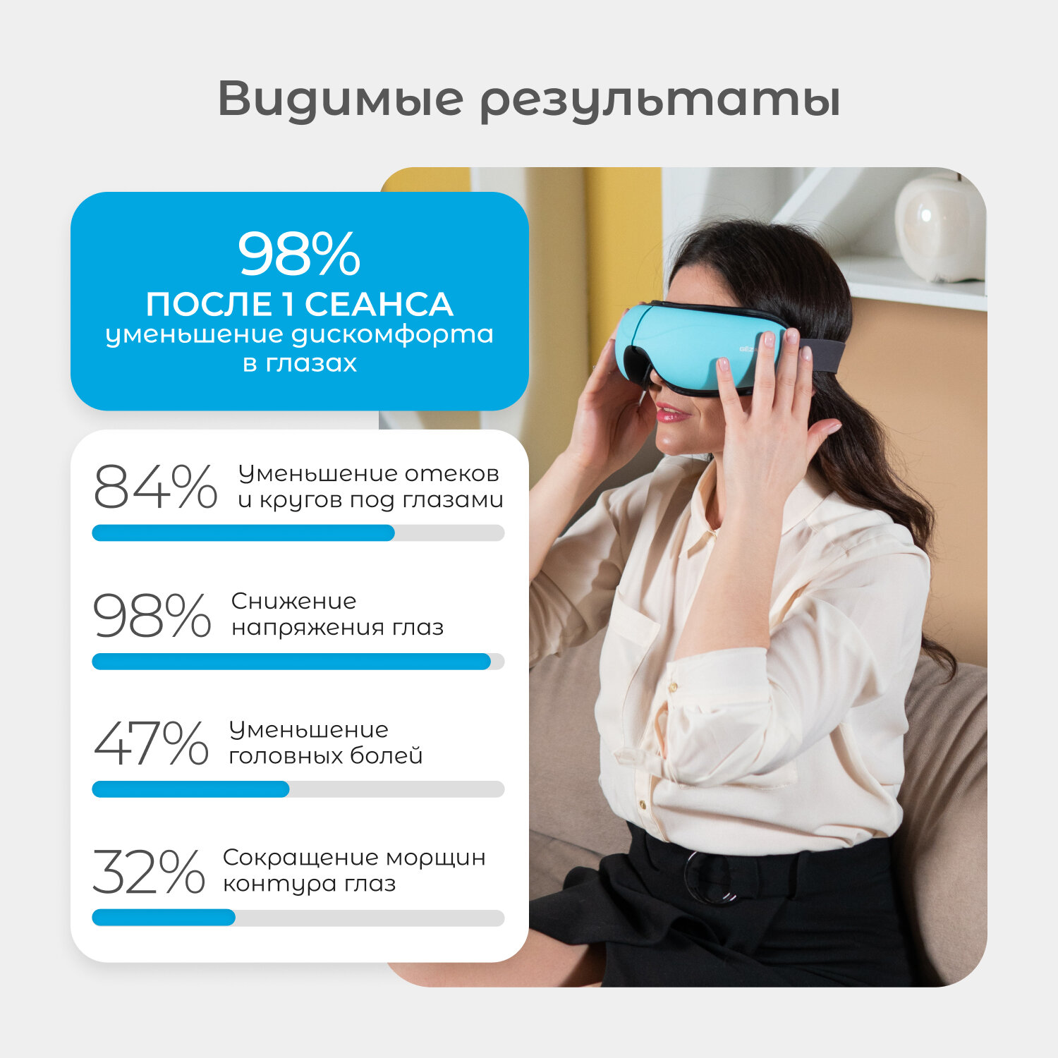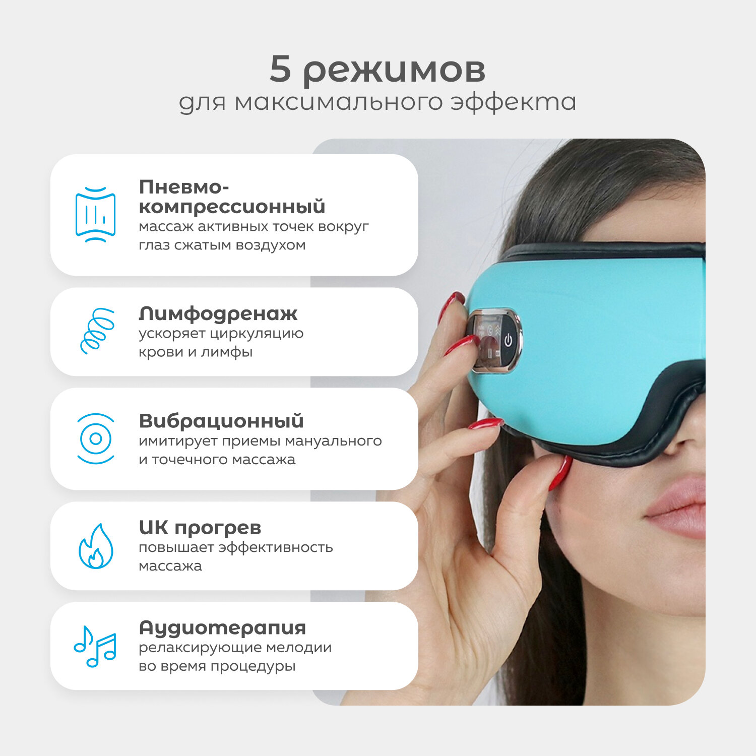 | Минусы: | Хотелось бы функцию, которая проводит массаж непосредственно века и чуть давит на глаз, а не только на область вокруг глаз |