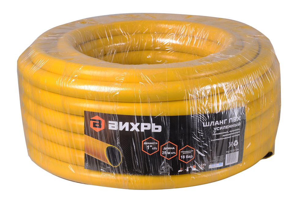 Шланг Вихрь поливочный ПВХ усиленный, пищевой трехслойный армированный 1", 25м (жёлтый)