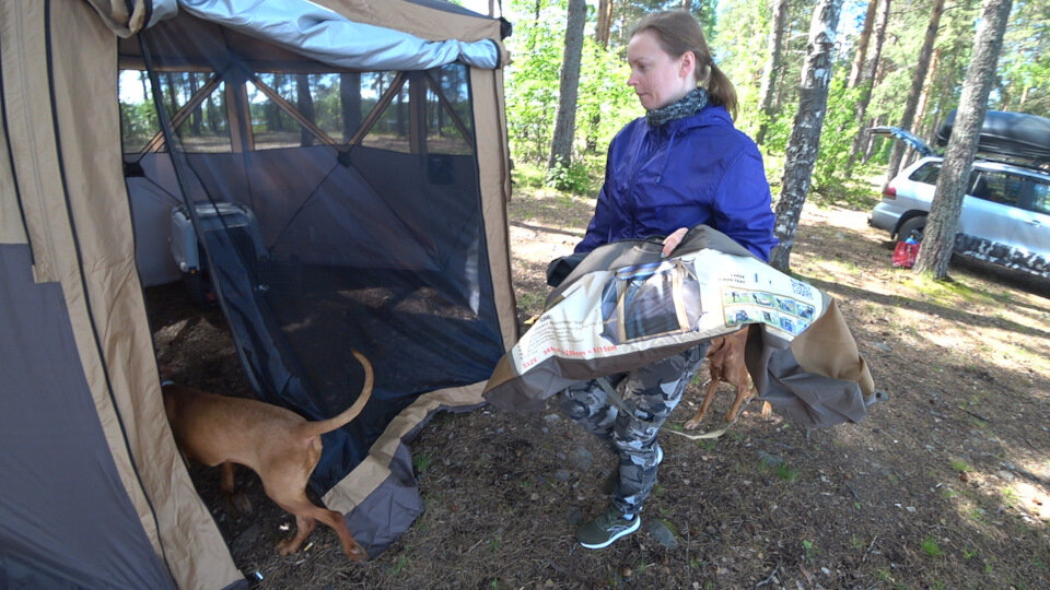 | Плюсы: | Большая, практичная кухня. Можно использовать и как для рыбалки зимой. Входит две раскладушки, печка, обеденный столик. И места ещё предостаточно. Отличная палатка. |