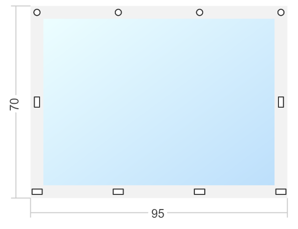 Мягкое окно Софтокна 75х70 см, Прозрачная пленка 0,7мм, Скоба-ремешок, Серая окантовка, Комплект для установки