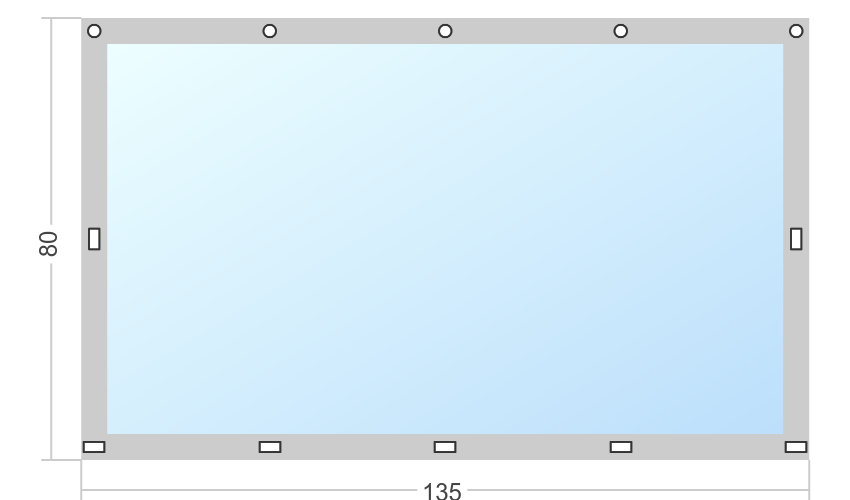Купить Мягкое окно Софтокна 135х80 см, Прозрачная пленка 0,7мм, Скоба-ремешок, Серая окантовка, Комплект для установки