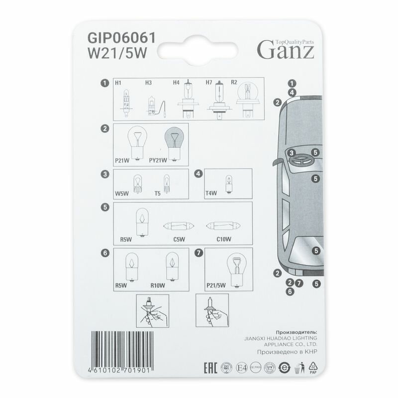 Лампа 12v W21/5w 21/5w W3x16q Ganz 2 Шт. Блистер Gip06061 GANZ арт. GIP06061