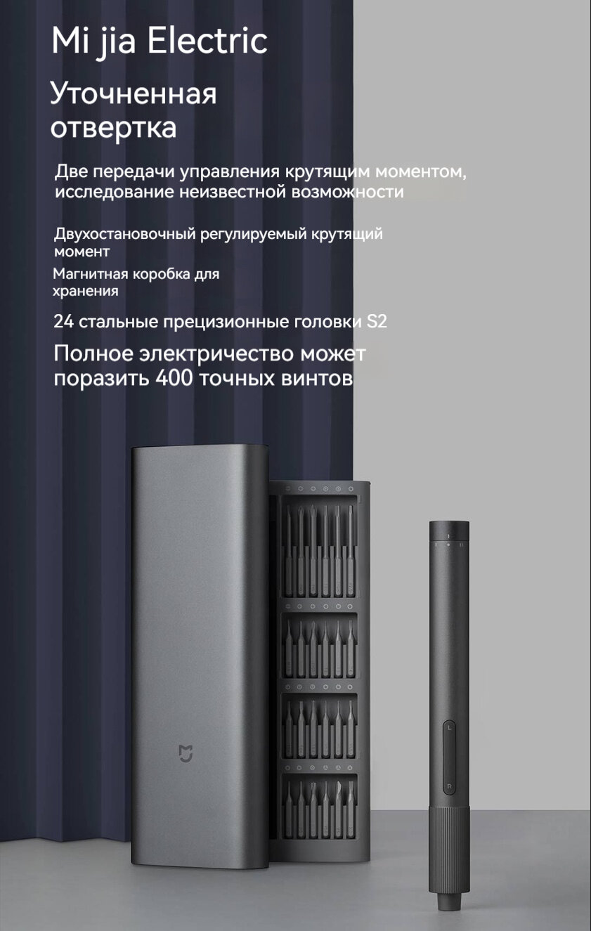 Отвертка Xiaomi Mijia 24in1, набор с битами, аккумуляторная, серая