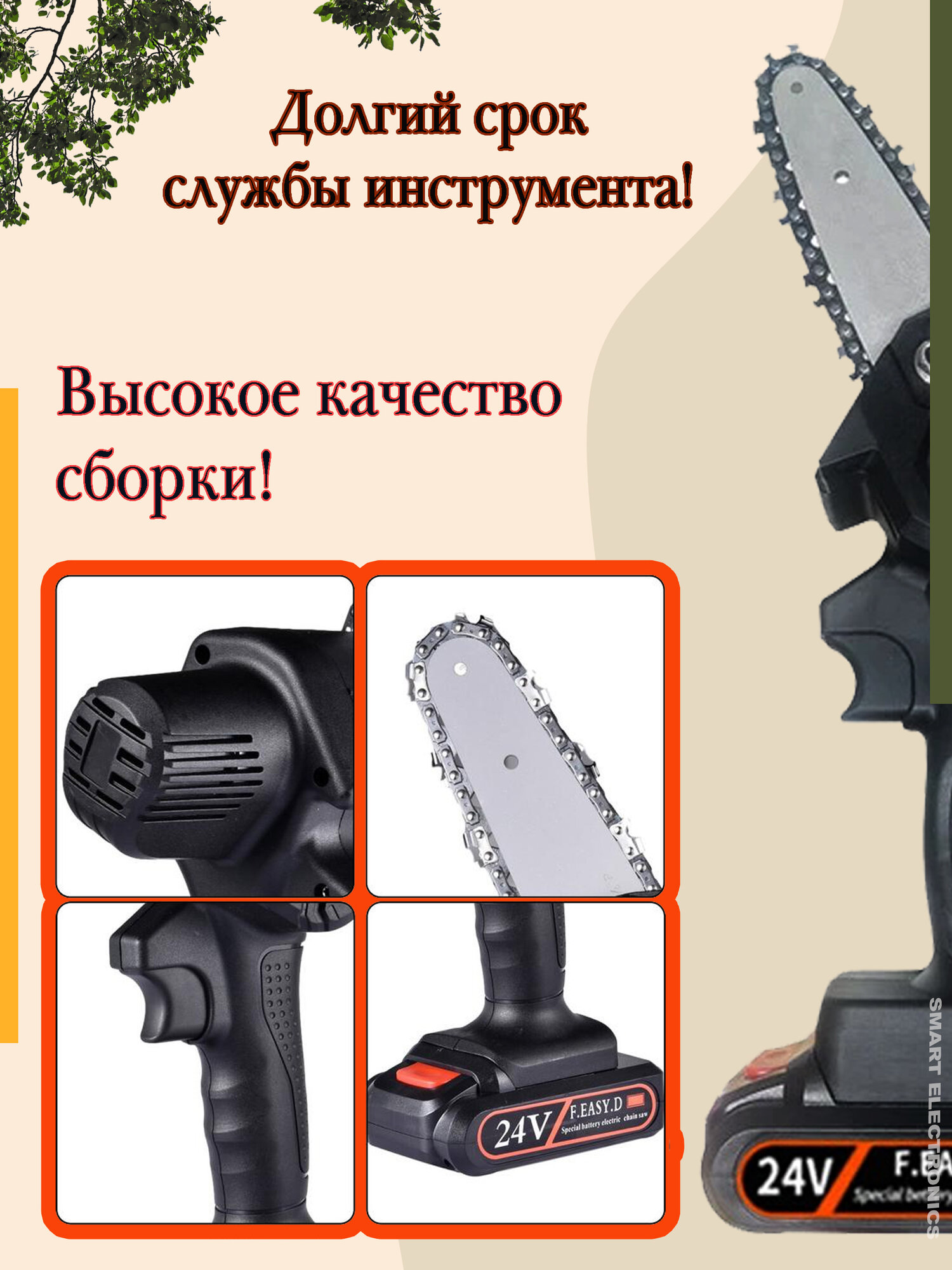 Ручная мини-электрическая пила/24 V/быстрая зарядка/ для обрезки деревьев/мощный двигатель/черный
