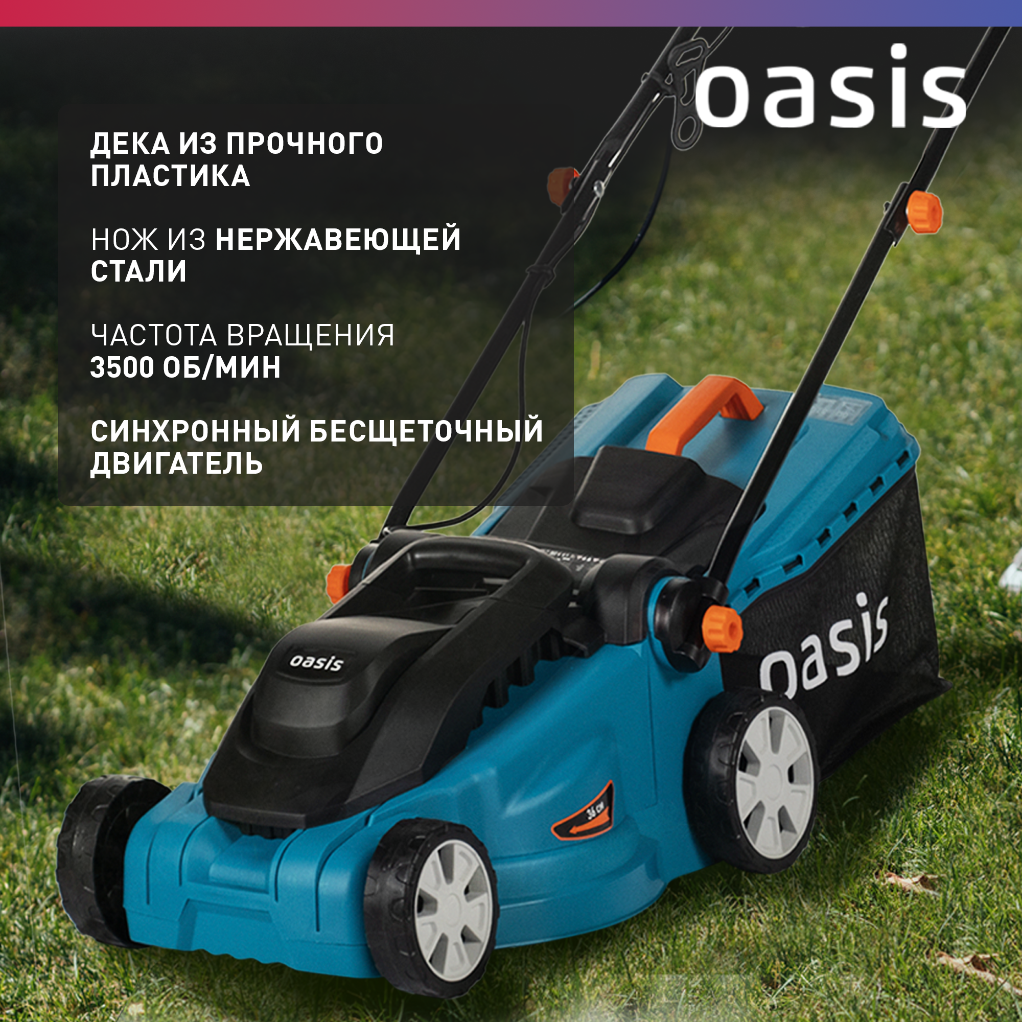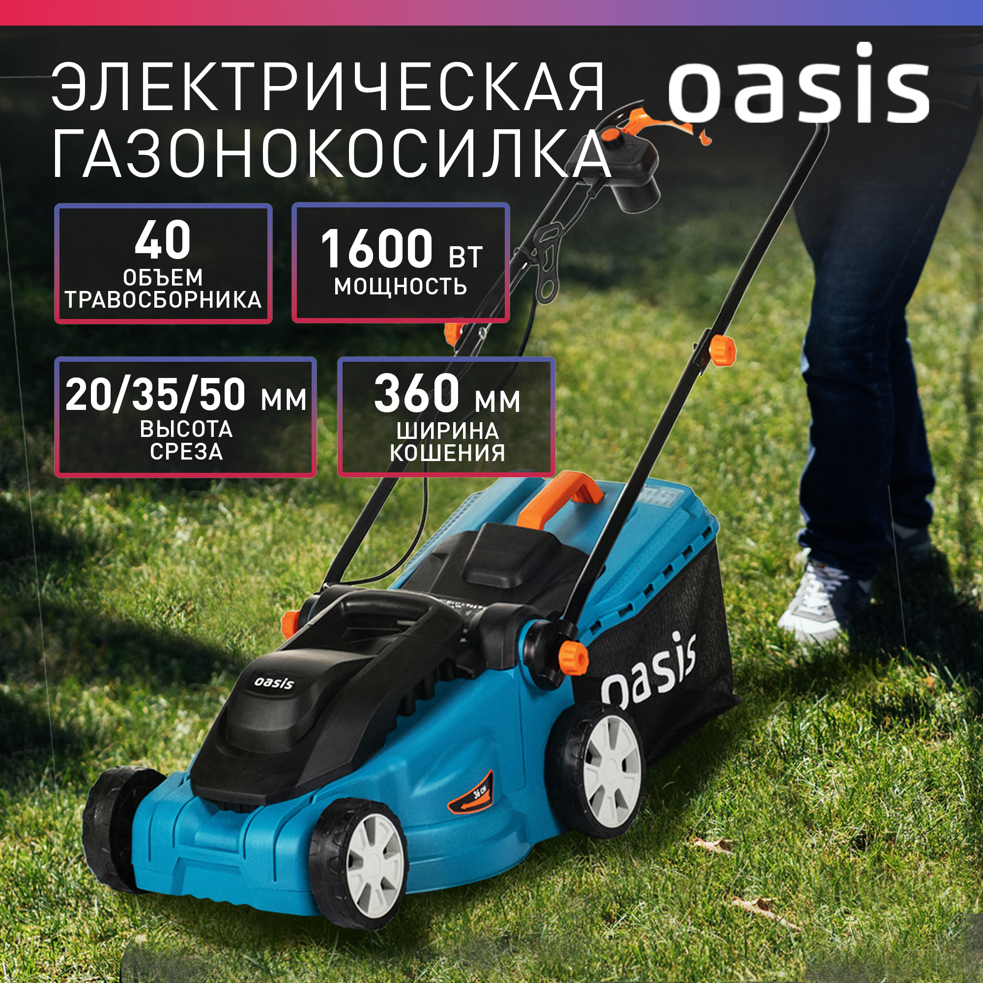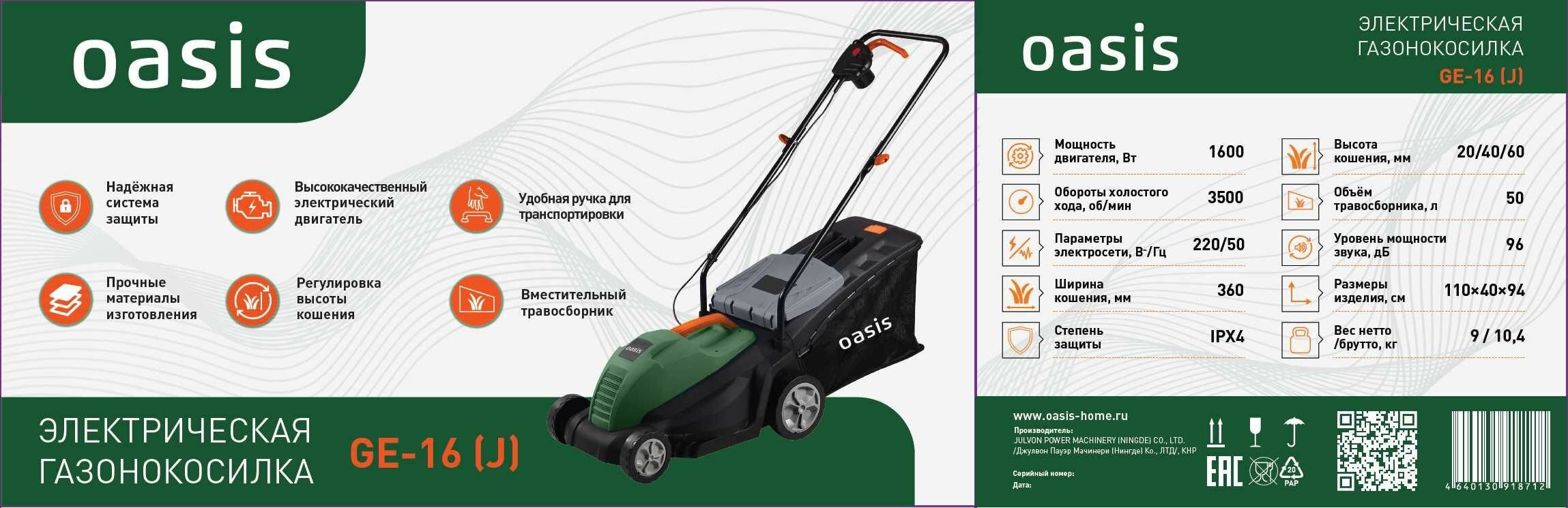 Электрическая газонокосилка Oasis GE-16, 1600 Вт, 36 см, 2022 интересное: