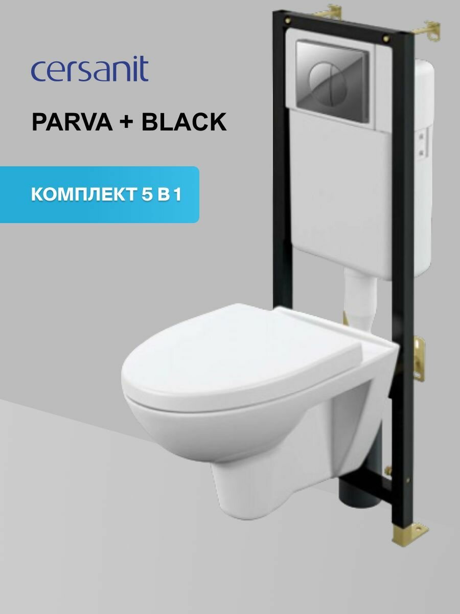 Cersanit Комплект Cersanit PARVA CO DPL EO инсталляция BLACK кнопка LEON пластик хром глянцевый
