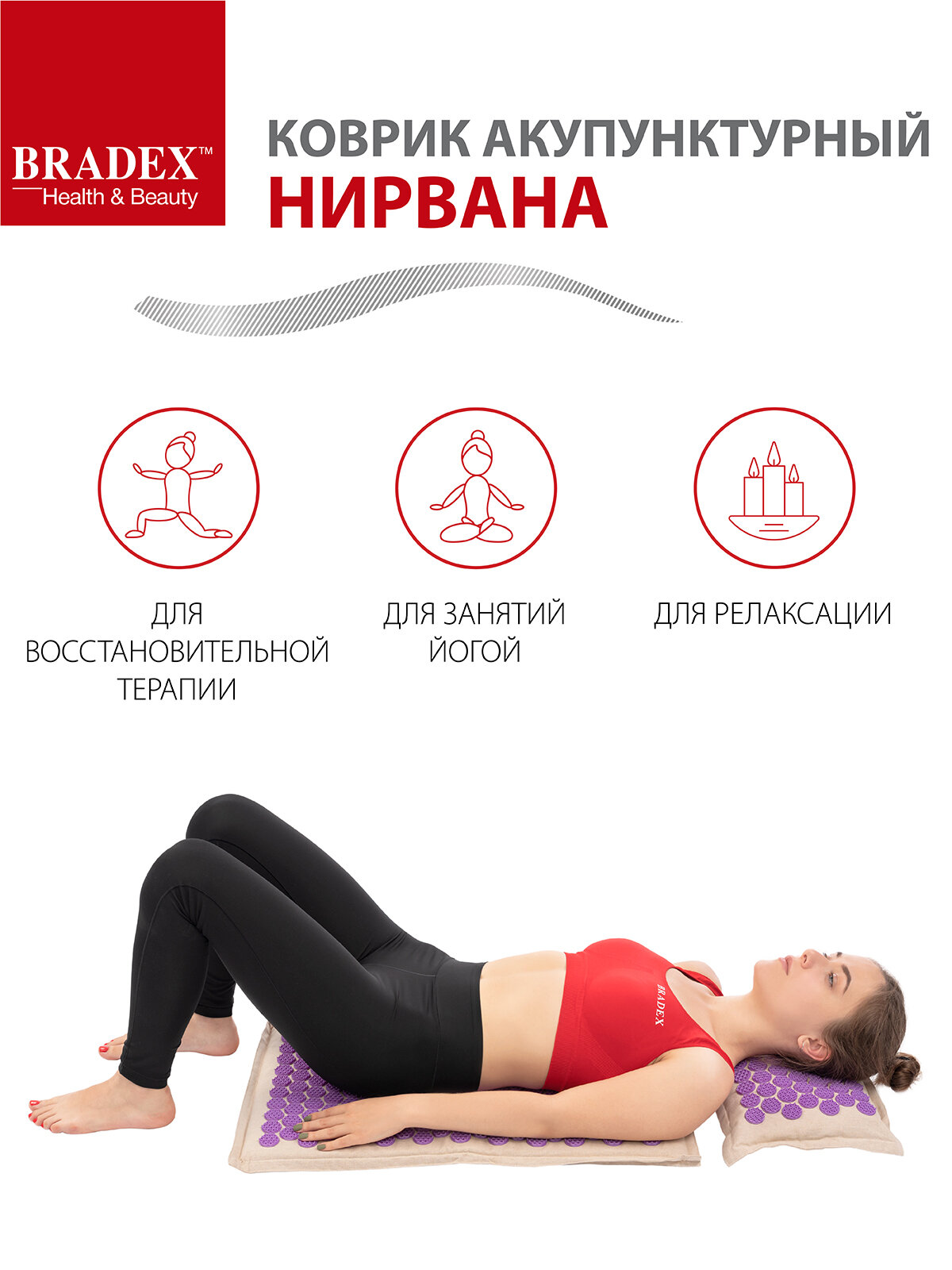 Коврик акупунктурный Bradex Нирвана бежевый, фиолетовые шипы