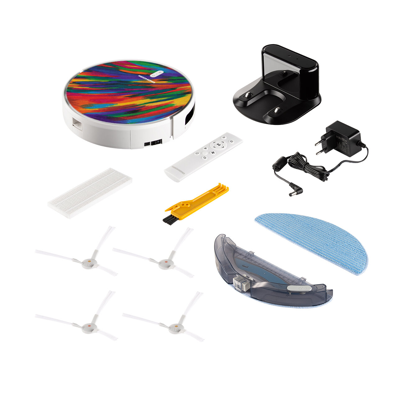 | Дополнительная информация | поддержка на операционных системах: iOS, Android; защита от поражения электрическим током: класс II; автоматическое прессование пыли; комплектация: сетевой адаптер; пульт ДУ; вращающаяся щетка (4 шт); робот-пылесос; аккумулятор li-ion; комбинированный контейнер для влажной уборки; руководство по эксплуатации; комплект щеток (2 шт.); сервисная книжка; щеточка для очистки; выпускной hepa-фильтр (2 шт.); контейнер-пылесборник; зарядная станция; насадка для влажной уборки (2 шт.) |