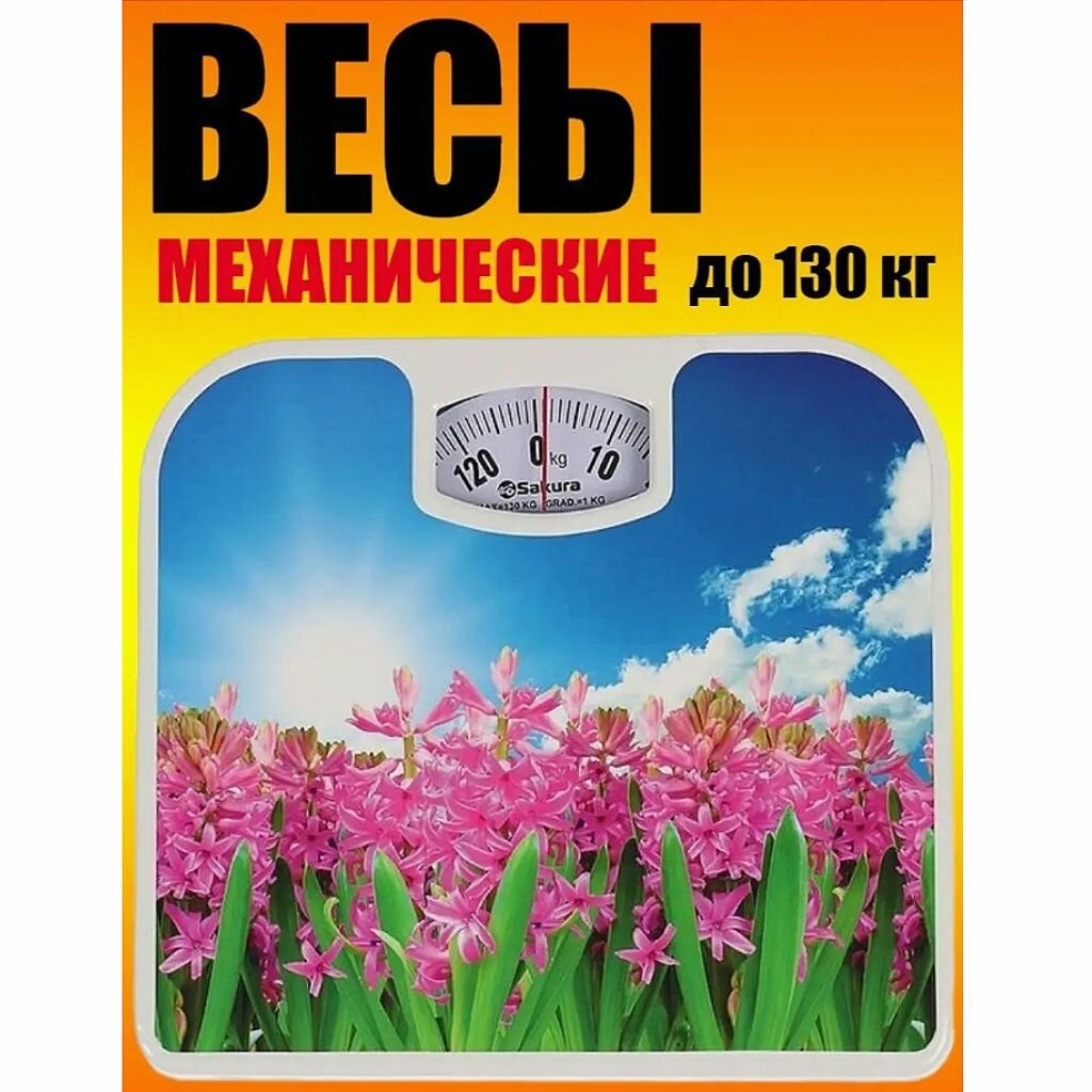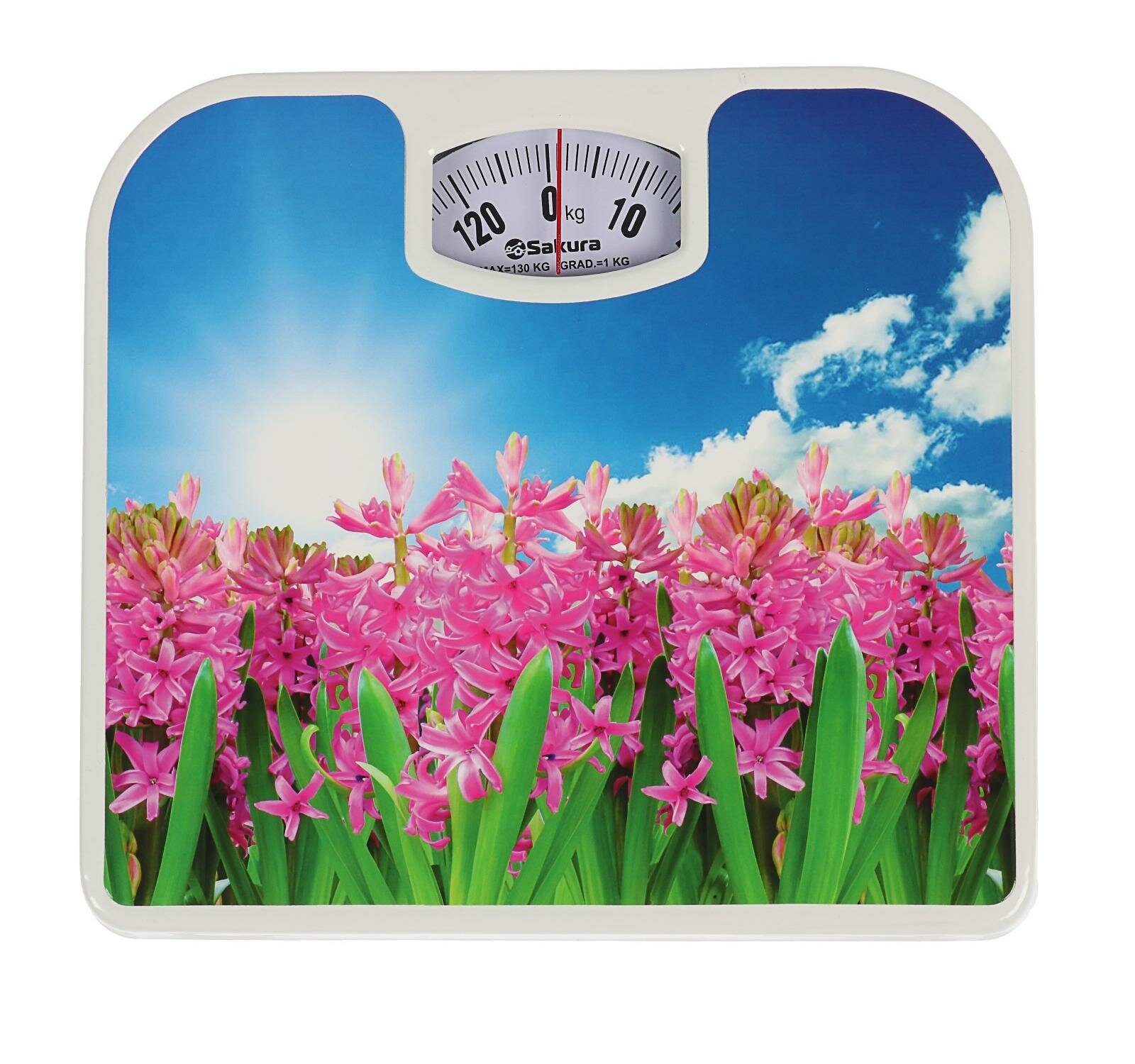 SAKURA Весы напольные Sakura SA-5000-7, механические, до 130 кг, картинка "гиацинты"
