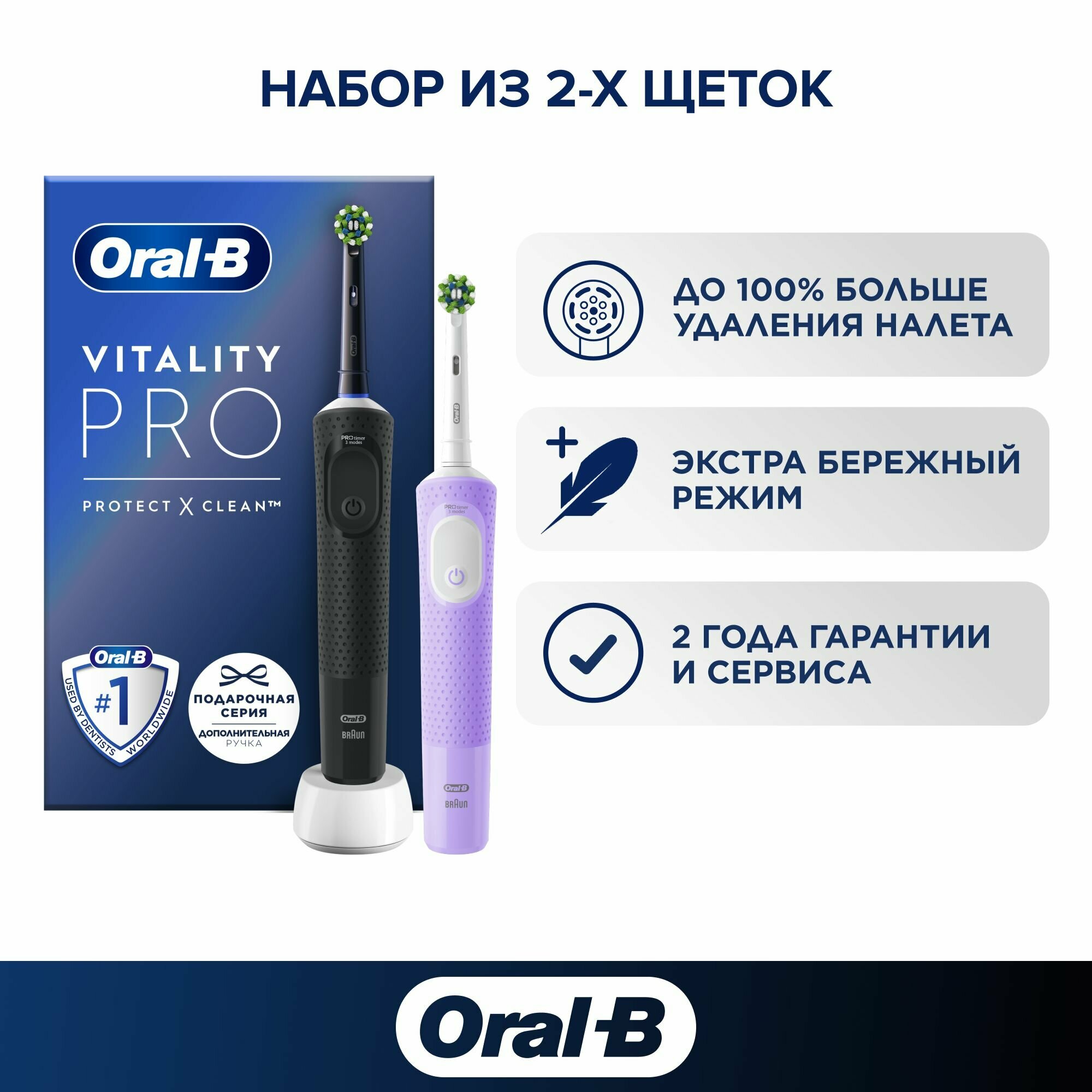 Набор электрических зубных щеток Oral-B Vitality Pro цвет:черный и лиловый [80368953]