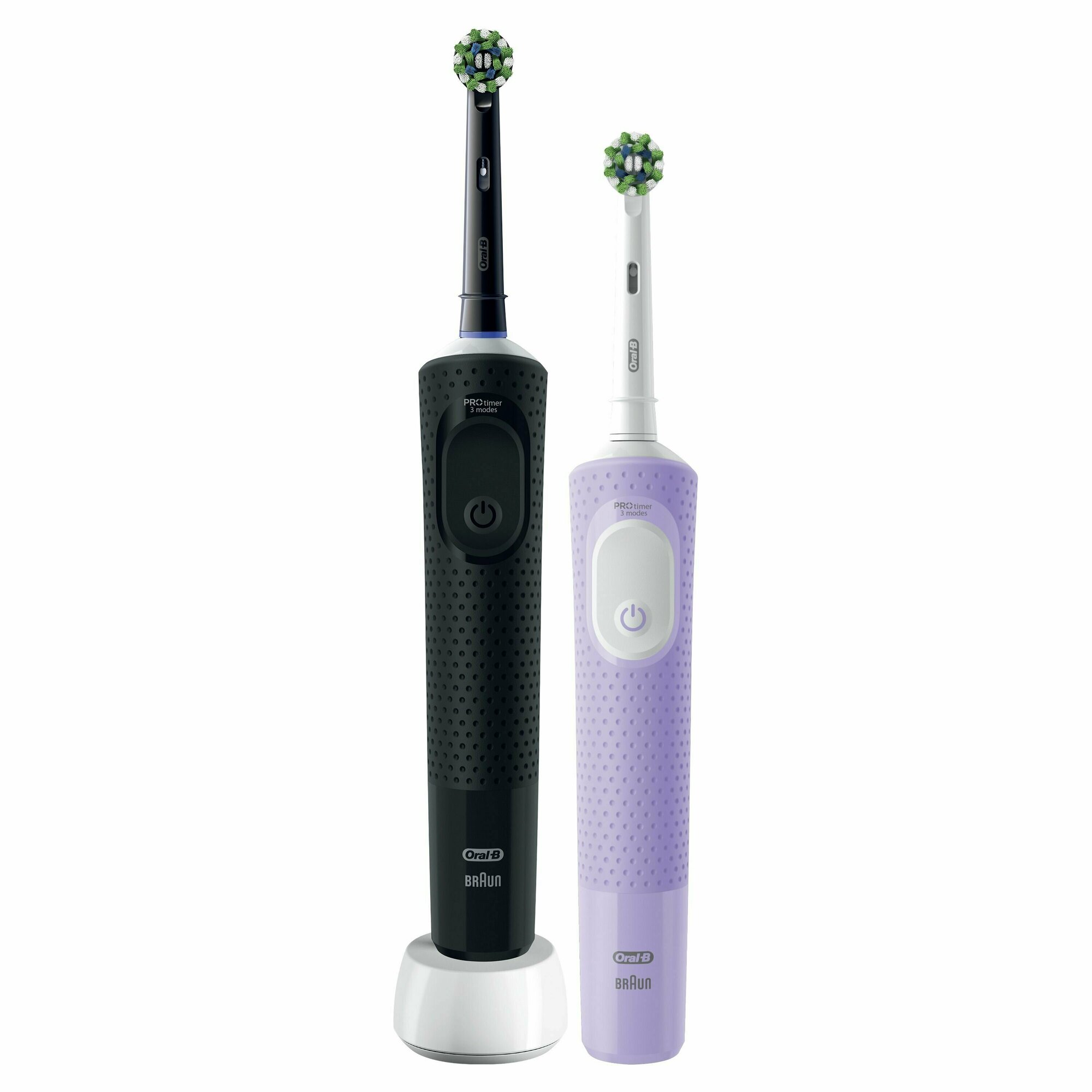 Набор электрических зубных щеток Oral-B Vitality Pro 2 щетки, черная и лиловая, 2 насадки