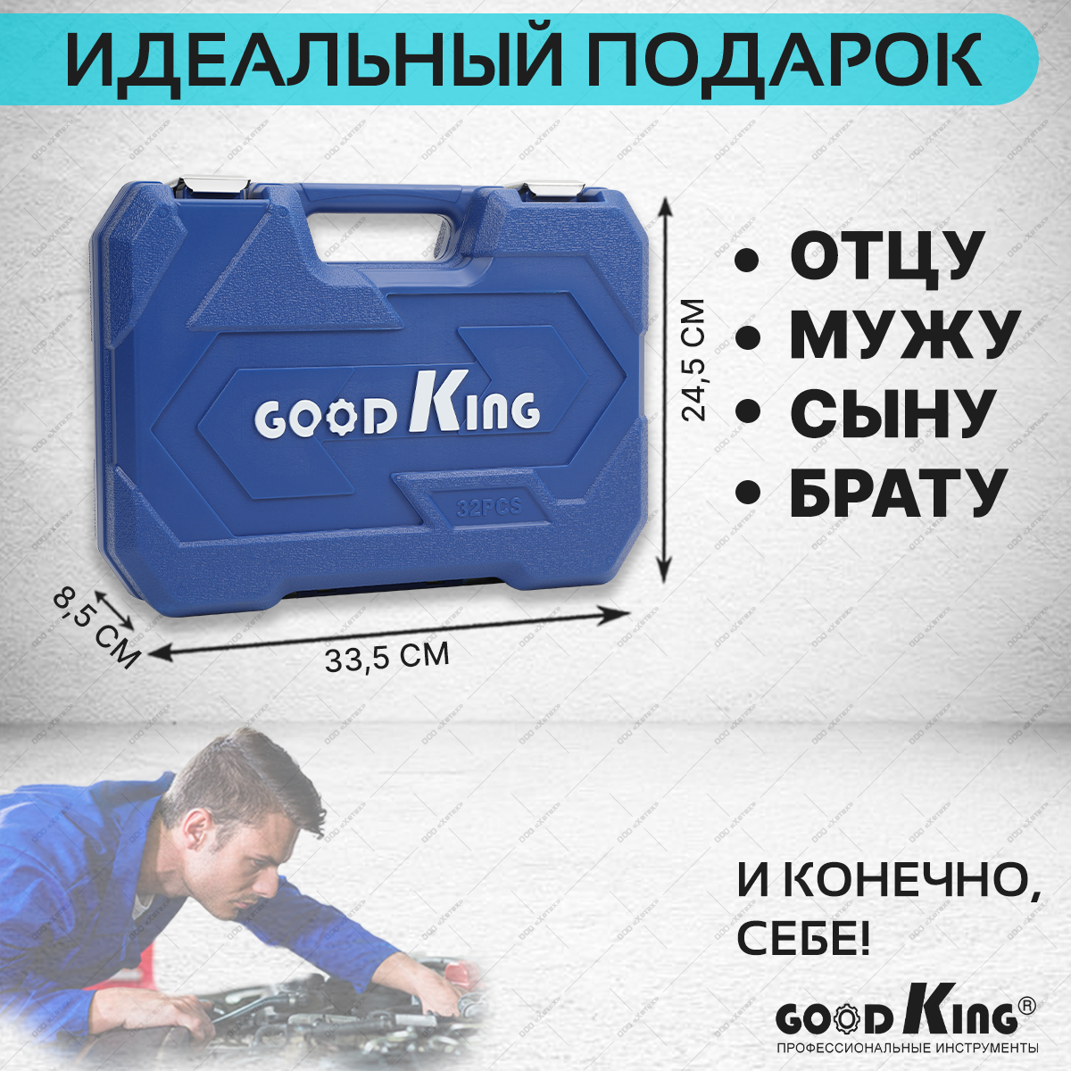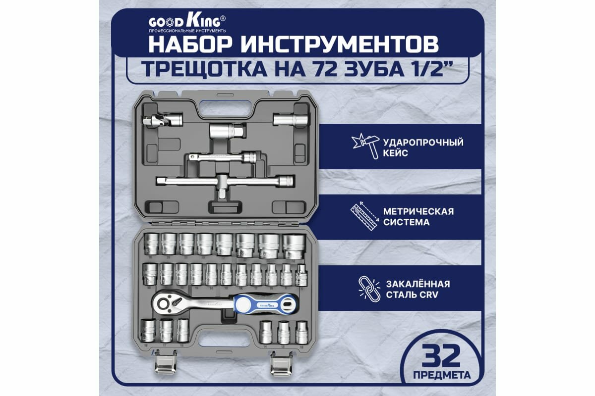 Набор инструментов GOODKING, 32 предмета, трещотка 1/2", торцевые головки (B-10032)