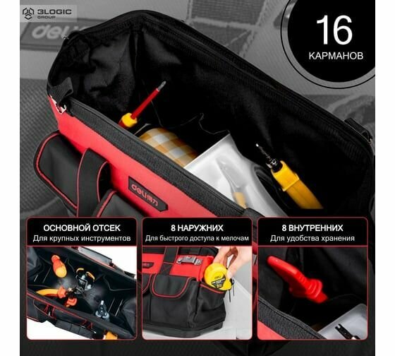 Сумка для инструментов с жестким пластиковым дном DELI DL430318 430x200x290 мм, 16 карманов, плечевой ремень, ткань Оксфорд 1680d 111106